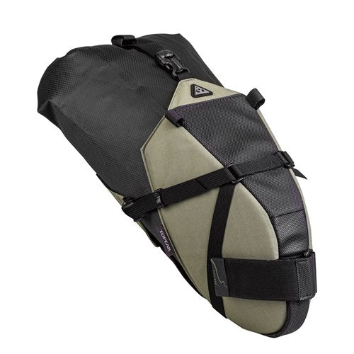 A large capacity seat bag specifically designed for bikepackers wanting a streamlined way to carry gear without the need for a rear rack. The reinforced, anti-slip/scratch fabric protects the saddle while the advanced mounting system enables convenient and secure mounting to seatpost and saddle rails. Easy access waterproof carry bag and built-in air release purge valve keeps bag compact and dry while you’re on your next adventure.