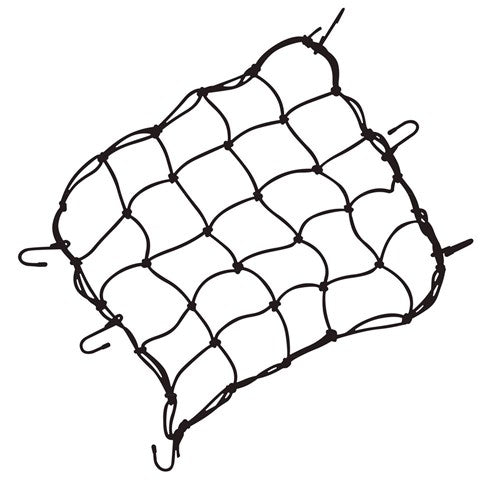 Elastic nylon cargo net attaches to Topeak TrolleyTote™ or other basket types and keeps contents safe and secure while riding. Attaches to rack or basket with durable, coated hooks.