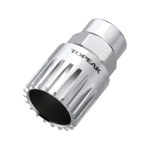 Shop grade tool for removal and installation of Shimano® and ISIS Drive® bottom bracket cups. Fits both 24 mm wrench and 1/2” socket for tool interface flexibility. * Shimano® is a registered trademark of Shimano® Inc.