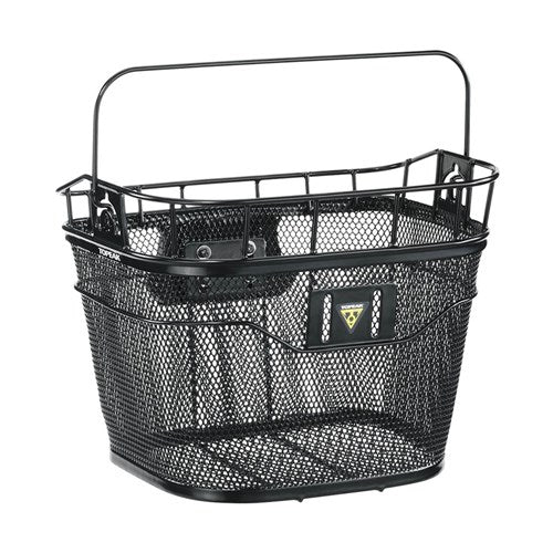 A sturdy handlebar-mounted metal basket for shopping trips, quick jaunts around town. QuickClick®TM Handlebar Mount (Fixer 3) makes attachment and removal a breeze.