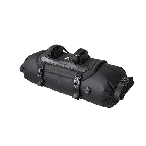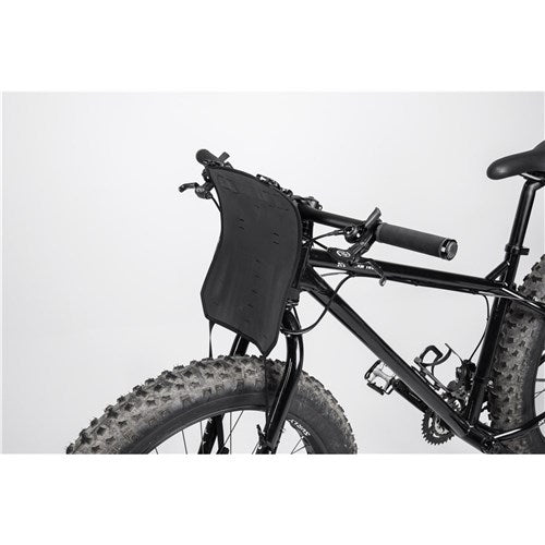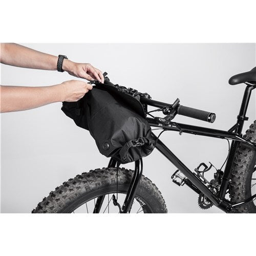 Pack all the gear you need and enjoy the freedom of bikepacking. FrontLoader is perfect for carrying light yet bulky items like sleeping bags, camping gear and spare clothing. Featuring a tough outer support harness and constructed of durable abrasion and water resistant materials, it’s easily installed or removed with two straps, special spacer mounts and quick release buckles. A backside head tube strap attachment increases load stability. An 12 liter removable waterproof drybag keeps contents completely protected from wet weather and splashes while a built-in air release button purges unwanted air from the bag to effectively compress its contents.