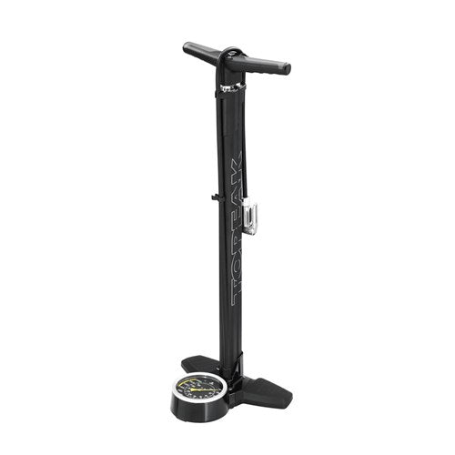 The king has returned to rule!The new JoeBlow® Ace DX features an innovative three-stage design that achieves both high pressures and high volume in record time. Stage one opens both barrels for big volume to reach 60 psi with 30% less effort than standard floor pumps. Stage two uses the main barrel only for pressures up to 120 psi while stage three engages the small barrel to achieve an amazing 260 psi. Two tone padded handles, wide stable base and new 4” base mounted analog gauge make inflation easy. The new SmartHead® DX1 automatically adjusts to fit Presta and Schrader valves without swapping parts and the lower profile air release button makes getting the right pressure easy. Includes ball and air bladder type inflation needles.