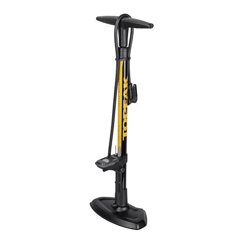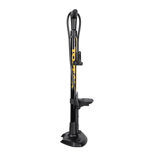 An easy-to-read mid-mounted digital gauge delivers accurate tire pressure readings up to 160psi / 11bar. Hammer type TwinHead® DX5 pump head with an extra-long, tangle-free hose makes it easy to reach valve stems. A durable steel barrel and large steel base with ergonomic padded handle make it easy to get your ride up to pressure fast.
