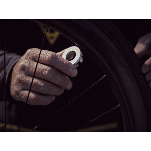 Low Profile high strength steel spoke wrench easily works on 13G (3.5mm) / 14G (3.4mm) / 15G (3.2mm) and Shimano® (4.3mm) wheel set nipples to adjust spoke tension and true wheelset. NC machined for precise dimensions. * Shimano® is a registerted trademark of Shimano Inc