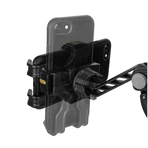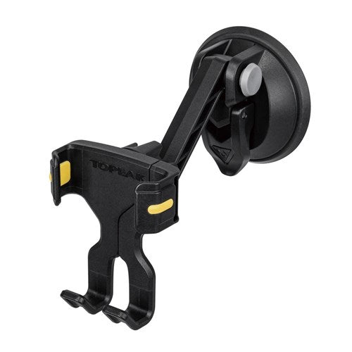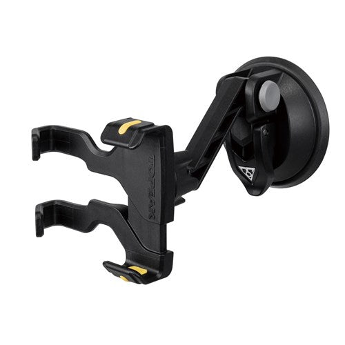 A smartphone holder with powerful suction cup mount providing tool-free installation on car windshields and windows. Fits 4.5”-6.5” screen smartphones. 360? adjustable and rotates for landscape or portrait viewing.