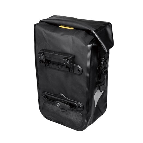 The new Pannier DryBag is constructed from a tough, sonically welded and seamed sealed waterproof material. A watertight roll-top closure provides maximum protection from trail dust, road spray and nasty wet weather. Our new Handle Loc system quickly and securely attaches the pannier to the rack and is quickly removed with a simple upward press & pull of the top mounted carry handle