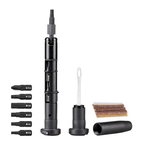 Two easily accessible hidden compact tool kits housed in your handlebar ends. The perfect tool companion for your mountain bike. The kits come with 3.5mm plug insertion tool for tubeless tire repairment and a full set of 3 / 4 / 5 / 6 / 10mm Allen bits, T25 Torx® bits, and #2 Phillips bit for bike maintenance.