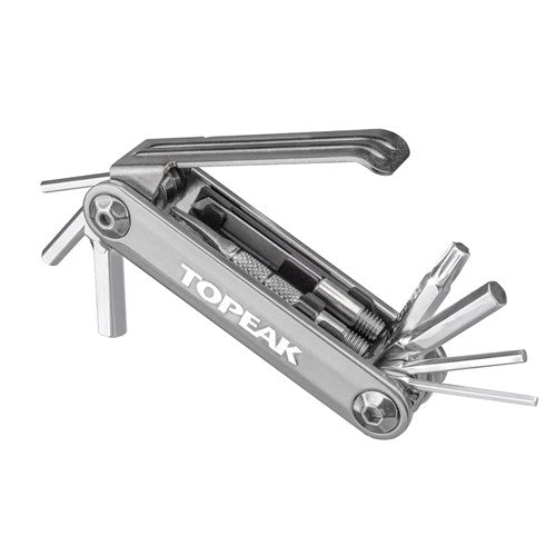 11 function, pro-quality, precision mini tool with integrated tubeless tire repair functions. Tubeless repair tools conceal within the folding tool body. Integrated tubeless tire repair tools snap into the tool body for easy handling when repairing your tire. Perfect for any road or trailside repair.