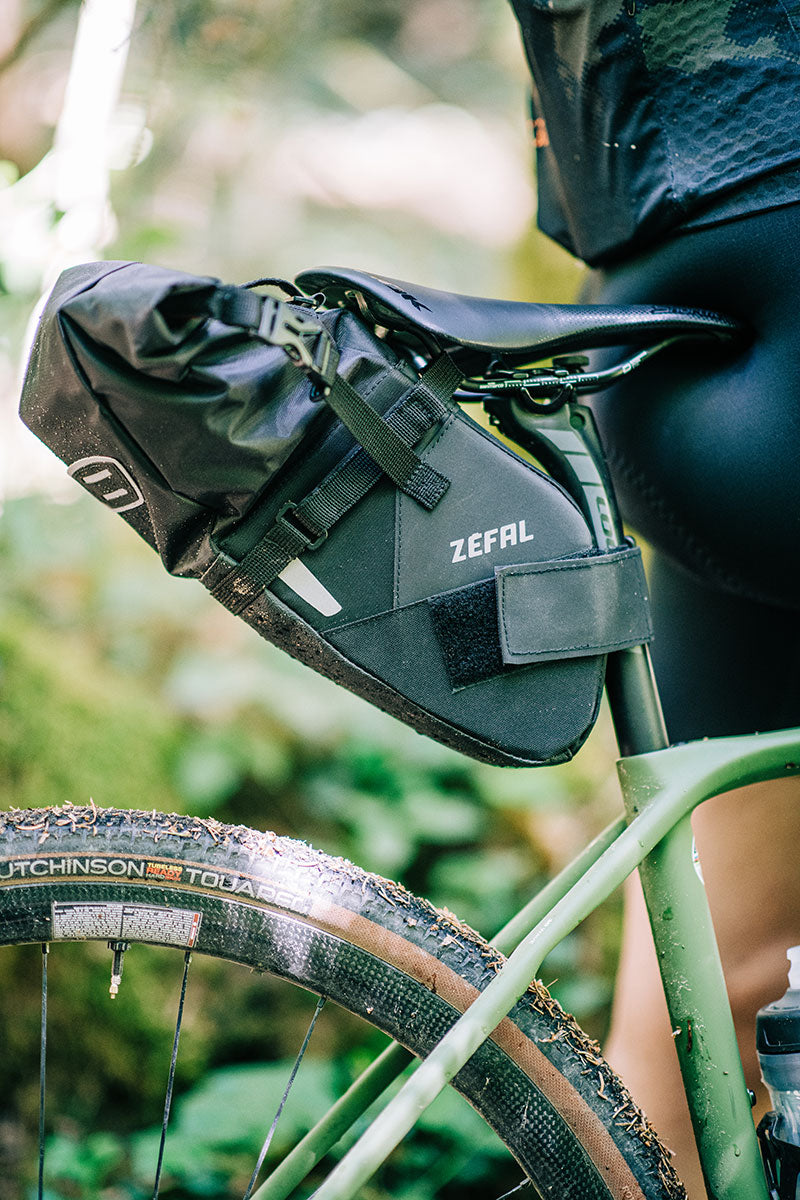 The Z Adventure bags are designed to carry a large volume of items without the need for a rear rack. Equipped with several durable self-adhesive straps and anti-tear material on its base, they attach to the saddle rails and seat post for optimal weight distribution on the bicycle. Designed for cyclists doing light tours or competing in endurance competitions. Equipped with reflective strips and an attachment loop for lights, the Z Adventure saddle bags are ideal for carrying light, large-sized items such as clothing. The folding closure and waterproof fabric with heat-sealed interior can safely carry all the equipment needed for a tour.